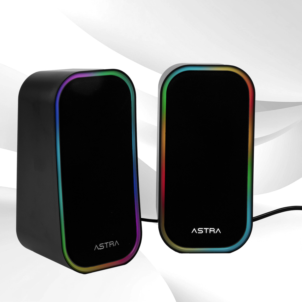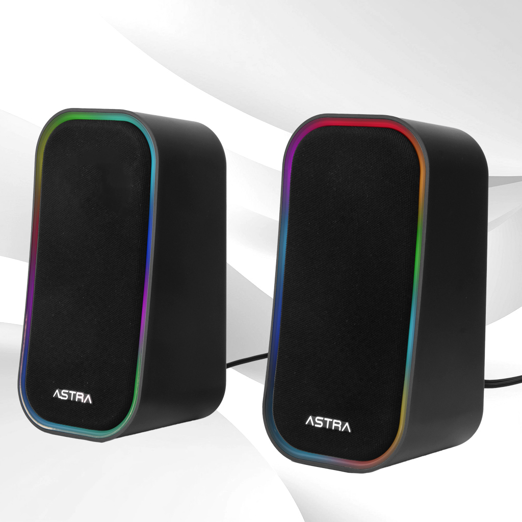 Cornetas NEBULA con potencia RMS para desktop, entrada USB/AUX, y luz RGB que añade ambiente a tu espacio multimedia o gaming. Perfectas para quienes buscan un combo de audio y estética.
